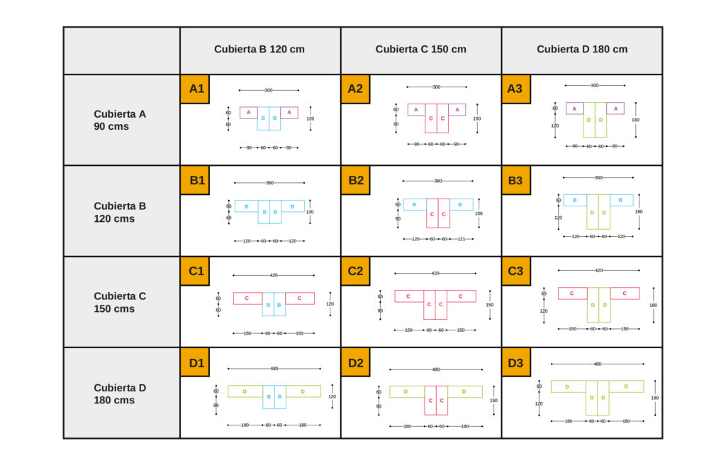 La configuración T es ideal para incrementar la densidad en un área y se puede convertir en una configuración en X de una manera muy fácil y con poca inversión.
